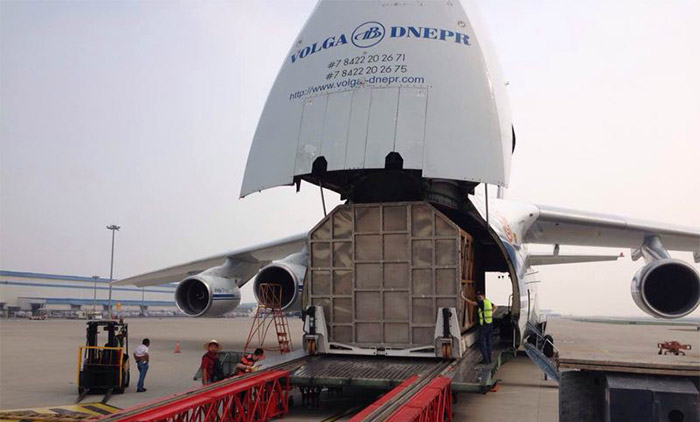 由美克斯機(jī)械制造的衛(wèi)星包裝箱將提供給最終用戶-中國(guó)航天,衛(wèi)星將裝在該包裝箱中通過大型專用運(yùn)輸飛機(jī)(AN-124 世界第二大運(yùn)輸機(jī))進(jìn)行轉(zhuǎn)運(yùn)工作。